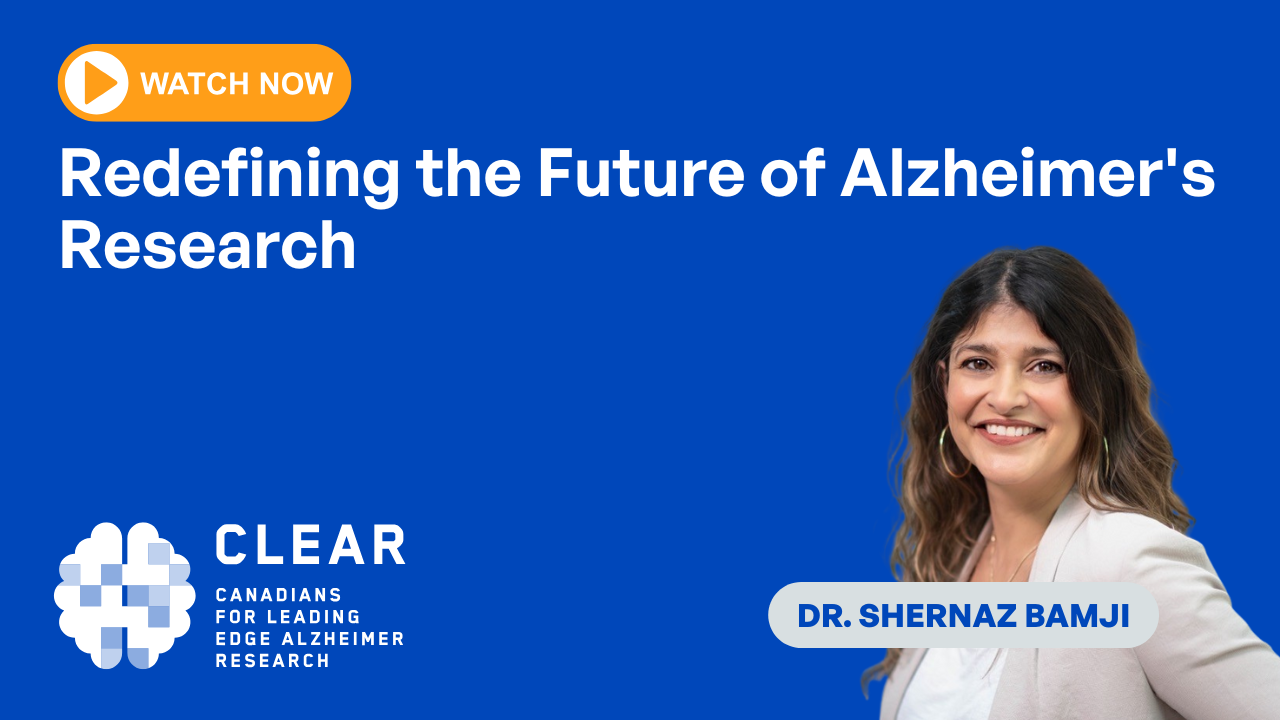 The virtual event featured guest speaker Dr. Shernaz Bamji (Neuroscientist and Co-Director of the Djavad Mowafaghian Centre for Brain Health), joined by moderator Claire Lynch (Executive Director of CLEAR Foundation).